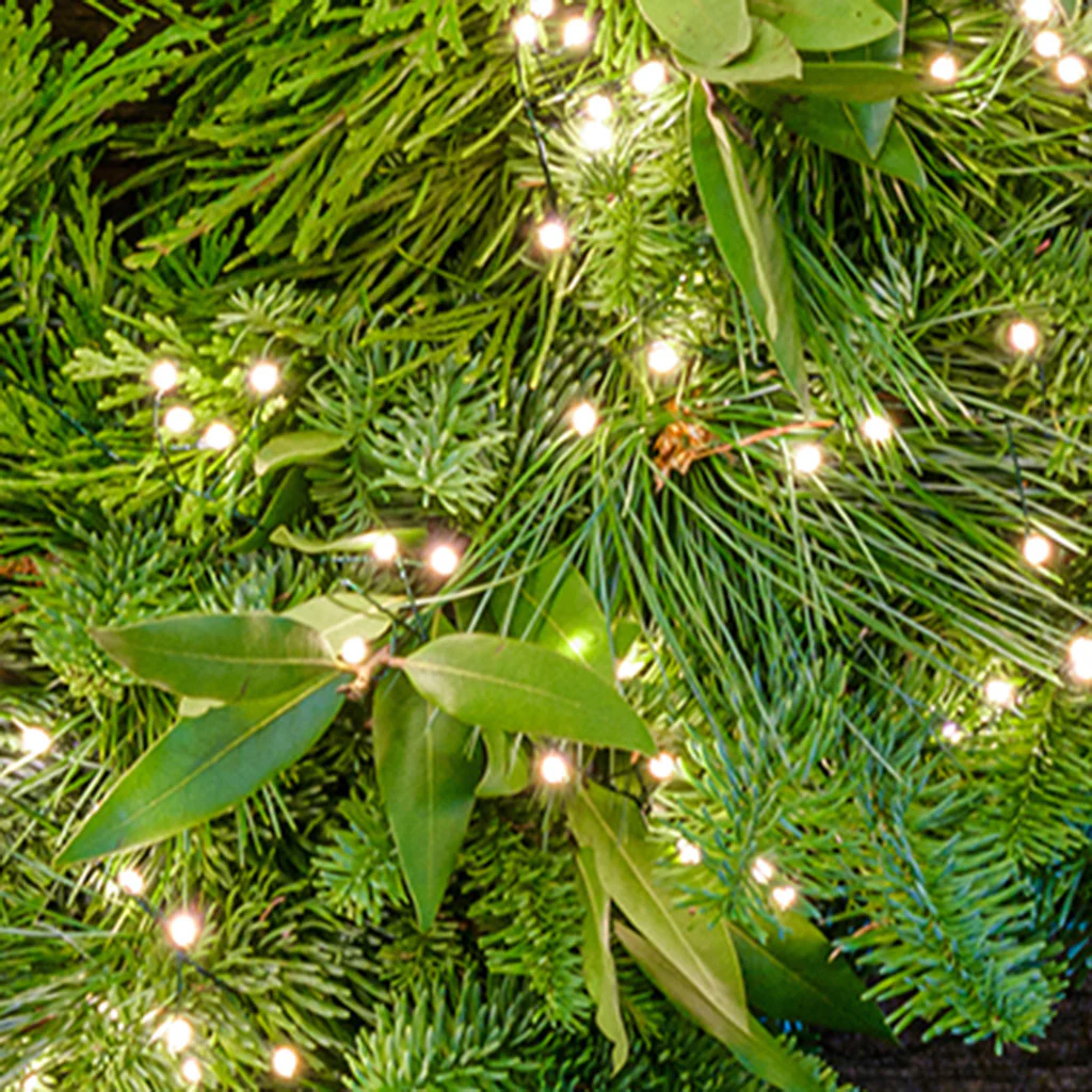 Named for their similarity in appearance to a strand of firecrackers, these stunning LED lights have an amazing 100 lights on a 5 ft strand creating a stunning effect that is bright and super festive. They really make a statement. These lights require four AA batteries and come with an automatic timer; once turned on, they stay on for 6 hours, then automatically turn themselves off and will light up again at the same time the next day, repeating this cycle until you turn them off. Our wreath lights are easy to use. When using them with a wreath, simply tuck them into the greenery all the way around the front of the wreath and put the battery pack behind the wreath so it's not visible. With a centerpiece, gently wrap the lights around the product, tucking the lights into the greenery. It's that simple! Our Firecracker lights come with 100 gorgeous warm white lights that add a stunning glow to wreaths, garland, centerpieces, and tabletop trees!Â