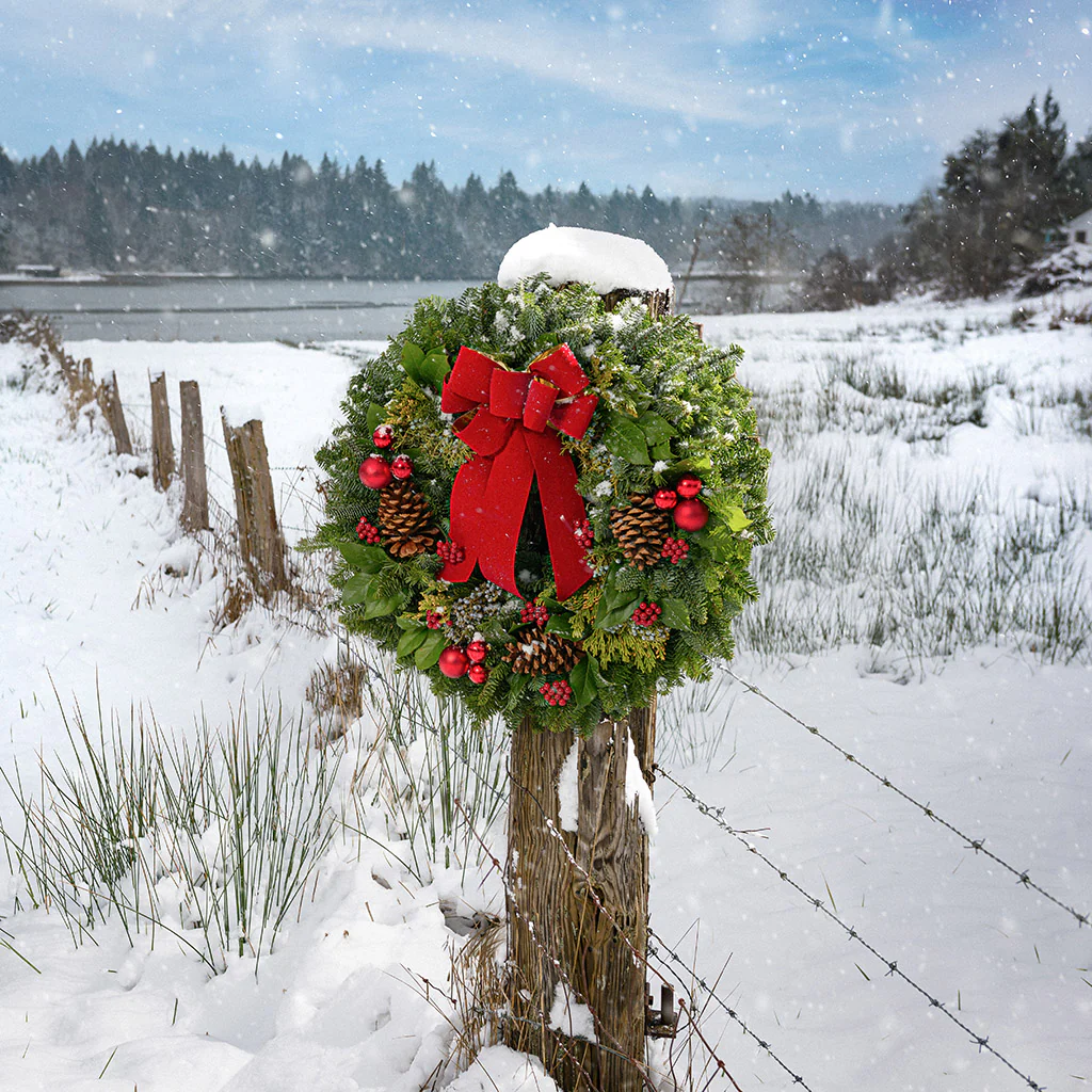 Our gorgeous Premium Red wreath is a best-selling classic with timeless elegance. It’s a quintessential Christmas design that continues to awe its recipients. We hand-assemble a lush base of fresh noble fir, juniper, and cedar and add accents of lustrous oval salal leaves. It’s then adorned with shiny red ball ornaments, red berries, and natural ponderosa pinecones, and is finished with a festive red bow. You simply can’t go wrong with this stunning beauty. Available in 26" & 32" sizes. 4-Packs contain four 26" wreaths of the same bow option (sorry, we cannot combine different color options in a 4-pack), and ships to one address. This wreath is available in these color options: Burgundy, Red, Gold, and Plaid.